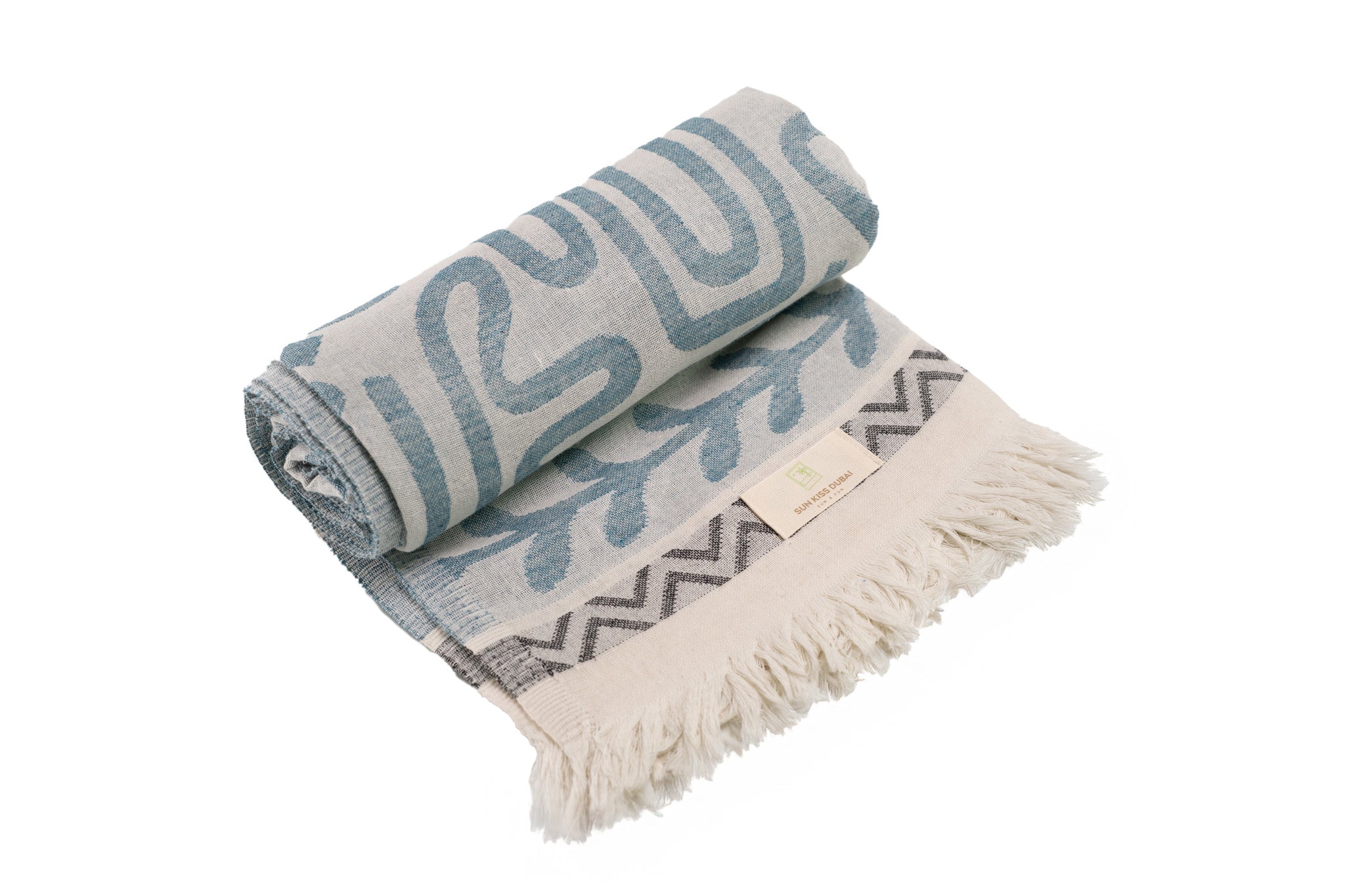 SunKiss Dubai Turkish Beach Towel - Petrol Blue Waves (100cm x 80cm)